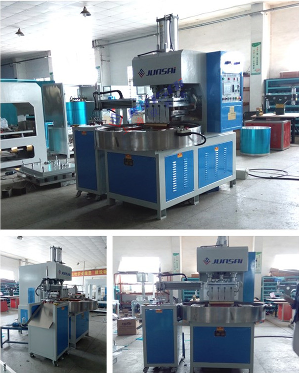 4、高周波熔斷機振蕩頻率符合標準,由高Q值真空電子管自激振蕩器產(chǎn)生高頻電磁場,使加工塑膠在上下電極間的高頻電場內(nèi),使其分子產(chǎn)生劇烈運動摩擦,在模具的壓力下得到其熔接效果。自動轉(zhuǎn)圓盤高周波熔斷機采用H型龍門結構,左右雙向自動滑臺,往返連續(xù)推送模具。