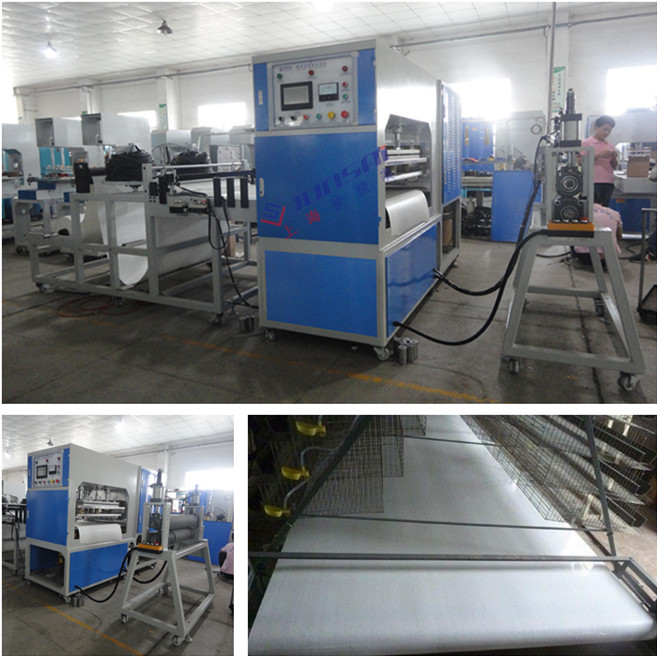 養(yǎng)殖傳送帶高周波熱合機,用電子管自激震蕩器產(chǎn)生一個高頻電場施加在電極上,被加工塑料在上、下電極間的高頻電場作用下,其內(nèi)部分子產(chǎn)生熔化現(xiàn)象而自身產(chǎn)生熱量,在壓力的作用下達到熱熔的目。