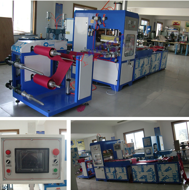 全自動(dòng)高頻機(jī)是塑料熱合設(shè)備,它是利用高頻電場使塑料內(nèi)部份子振蕩產(chǎn)生熱能而進(jìn)行各類制品熔合。主要用于:吸塑包裝,包括上下雙泡罩熱合切邊,泡罩與紙板熱合切邊等。