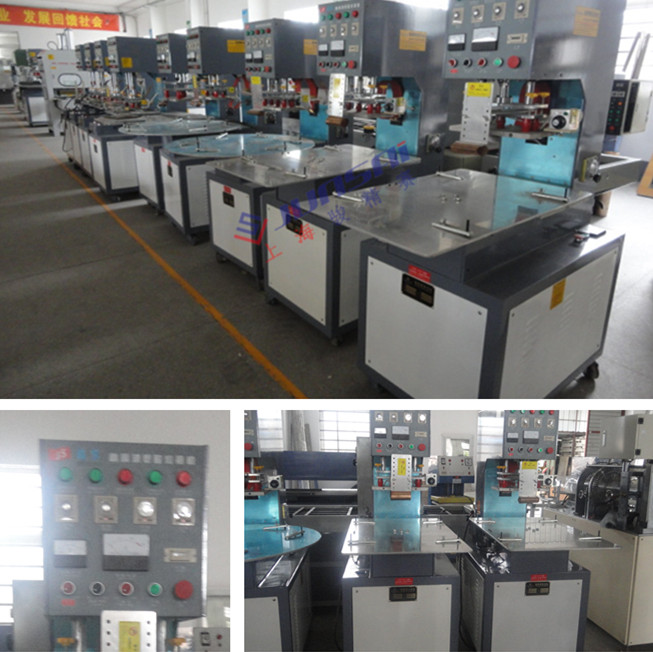 2. 高周波模具一般為一個(gè)上模、二個(gè)下模,交替工作,用戶(hù)也可以根據(jù)產(chǎn)量來(lái)選擇效率更高的多工位自動(dòng)轉(zhuǎn)盤(pán)式高周波機(jī)械。