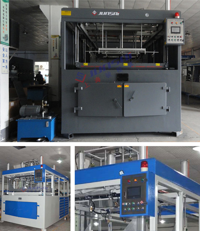特性:1. 皮卡箱寶厚片吸塑設(shè)備配置高。加熱爐采用紅外線陶瓷發(fā)熱磚上下加熱,。采用溫控儀一對(duì)一控制發(fā)熱磚,使?fàn)t區(qū)內(nèi)溫度到時(shí)候加均勻。成型部分由密封氣箱,壓片框,上模組件下模組件組成,成型中下模采用真空成型,同時(shí)下模配有平衡同步器,確保模架運(yùn)行平穩(wěn)。配有完整真空系統(tǒng),包括真空箱,真空泵,真空儲(chǔ)存罐,真空閥,反吹脫模裝置,二次真空和延遲真空。