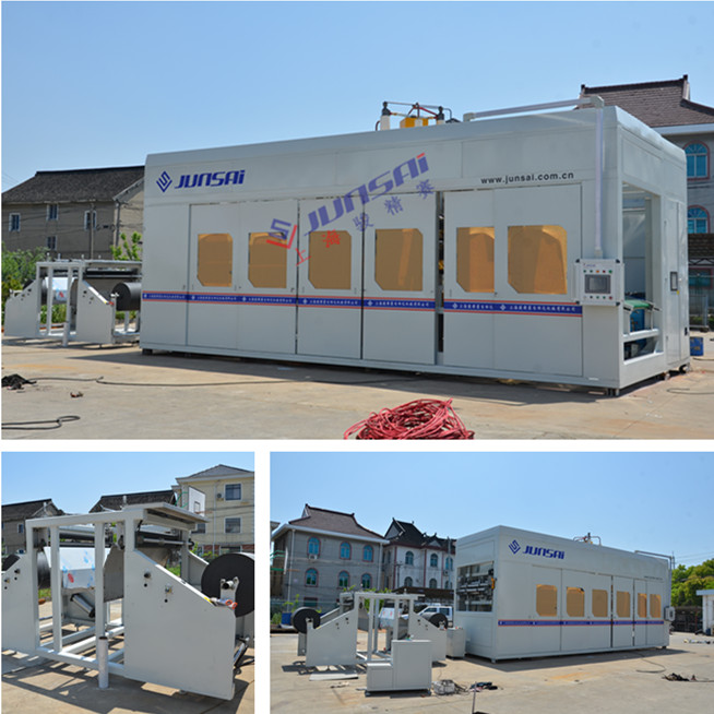 全自動雙層厚片吸塑機系列產(chǎn)品是采用國外技術(shù)及工藝技術(shù),結(jié)合國內(nèi)市場實際需求,研發(fā)生產(chǎn)的新型全自動厚片吸塑設(shè)備,該機采用PLC、觸摸屏自動控制系統(tǒng),模塊控溫系統(tǒng),自動鎖模系統(tǒng),可靠性強,功能性好,自動化程度高,操作簡單,自動對位上料,自動取成品,大大提高了生產(chǎn)效率。加熱系統(tǒng)采用英國鹵素短波加熱器,短波遠(yuǎn)紅外加熱器優(yōu)勢;紅外線長波,加熱均勻,滲透性強,反射效果好,加熱速度快(光熱同步),耗能低。